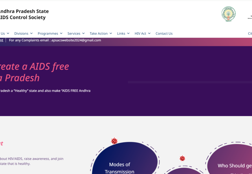 APSACS is an organization dedicated to preventing the spread of HIV/AIDS and providing support for those affected by the disease in Andhra Pradesh. It implements programs focused on awareness, prevention, treatment, and care for HIV/AIDS patients. The site contains information about APSACS’s various initiatives, including voluntary testing, counseling, ART (antiretroviral therapy), and programs targeting vulnerable populations. It also collaborates with national and international organizations to manage and monitor the HIV/AIDS situation in the state.(https://apsacs.ap.gov.in/)