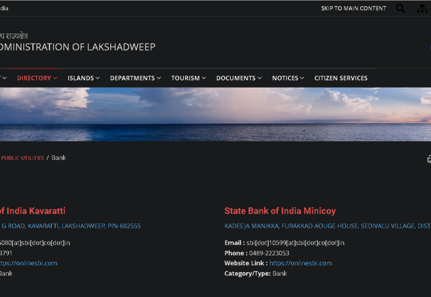The Banks section of the Lakshadweep Administration’s official website provides information about banking services available in the Union Territory of Lakshadweep. This section typically includes details about various banks operating in the region, their services, and how residents can access banking facilities. Here’s an overview of what you might find in this section: