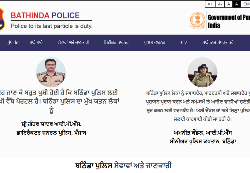 The Bathinda Police website offers resources on law enforcement, crime reports, safety alerts, and services like FIR registration, citizen complaints, and contact details for various police stations in Bathinda.