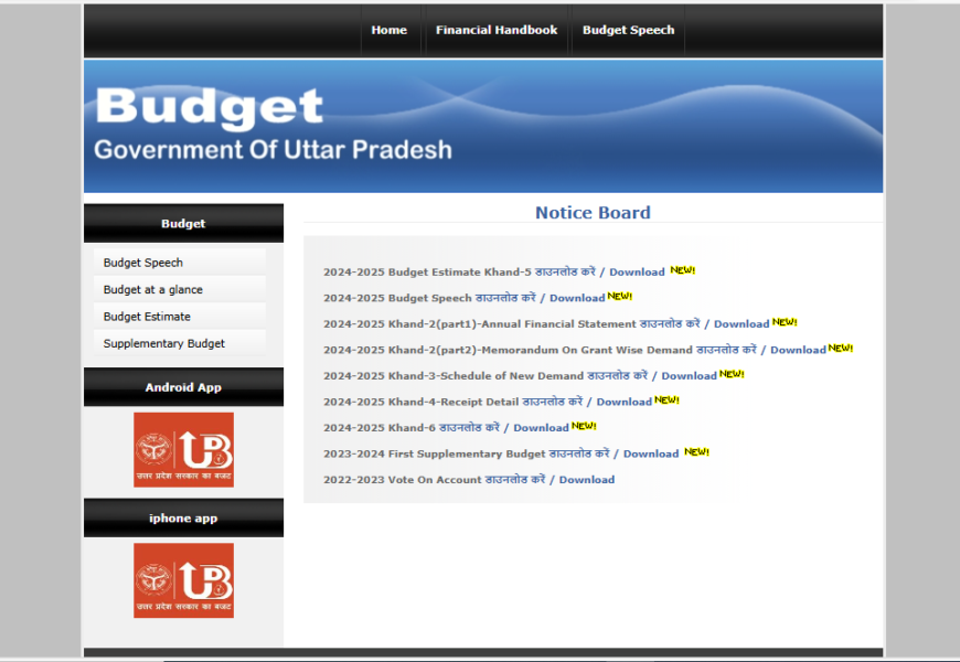 The website https://budget.up.nic.in/ is related to the budgetary information of the Government of Uttar Pradesh, India. Here’s what you can typically find on this website: