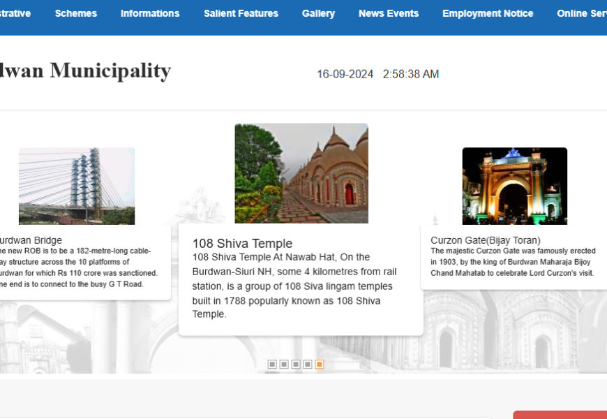 The link you provided leads to the official website of the Burdwan Municipality in West Bengal. This site provides information and services related to the municipal administration of Burdwan. Here are some key features and information you might find on the site: