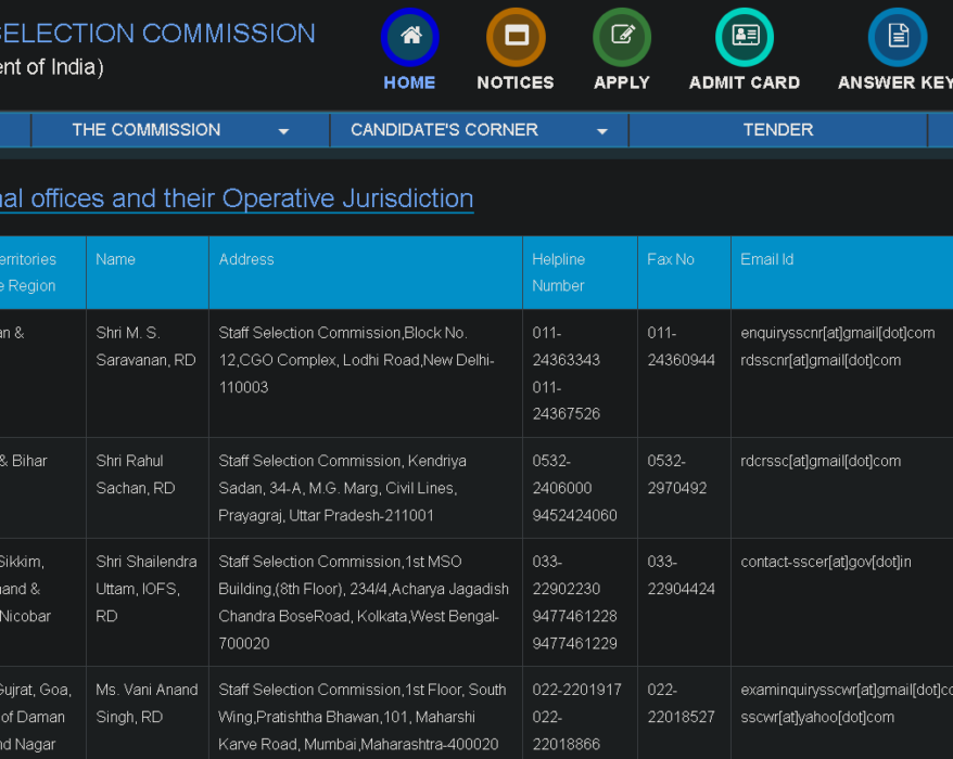 This is the official website of the Staff Selection Commission (SSC), which provides information...