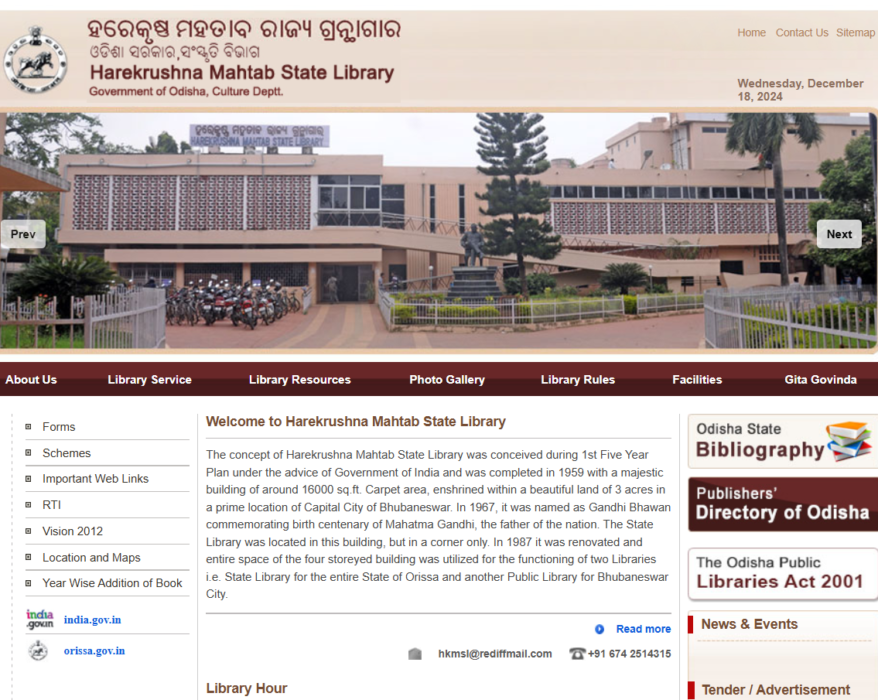 The Harekrushna Mahtab State Library website provides information about Odisha’s premier...