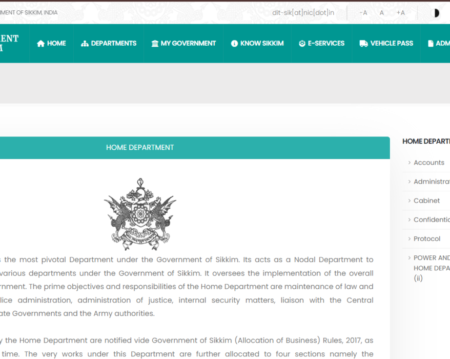 The website https://sikkim.gov.in/departments/home-department appears to be the official page for...