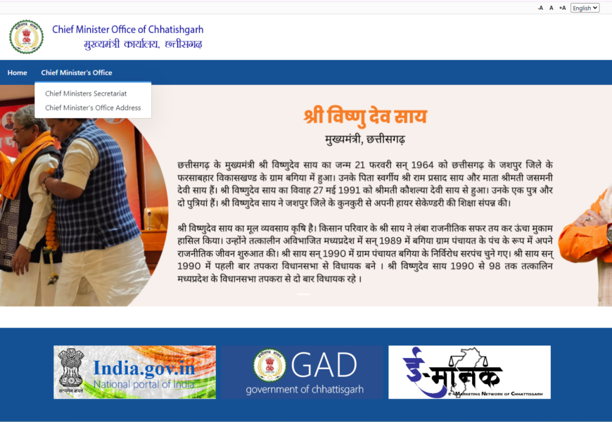 This is the official website of the Chief Minister’s Office (CMO) of the Government of Chhattisgarh, India. Here’s an overview of what you can find on this website: