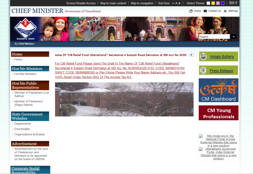 The Chief Minister of Uttarakhand’s official website enhances communication between the government and the public by providing access to information about the Chief Minister’s activities, policies, and initiatives. It supports transparency, public engagement, and effective governance, helping residents stay informed and involved in state affairs.
