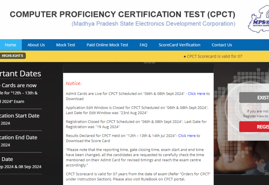 - CPCT Exam: Information about the CPCT (Common Public Service Centre Test), which is often a prerequisite for various government jobs and positions in Madhya Pradesh.