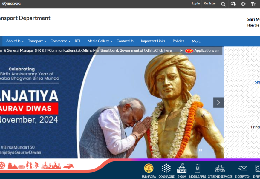 The Commerce & Transport Department, Government of Odisha website provides information about the state’s policies and initiatives related to commerce, transportation, and infrastructure development. It focuses on facilitating smooth trade, enhancing logistics, and improving transport systems within the state. The platform offers details about road transport services, vehicle registrations, permits, and licensing, as well as the promotion of trade and commerce through various schemes. It also includes updates on infrastructure projects aimed at boosting economic growth and connectivity. Visit the Commerce & Transport Department, Odisha for more details.