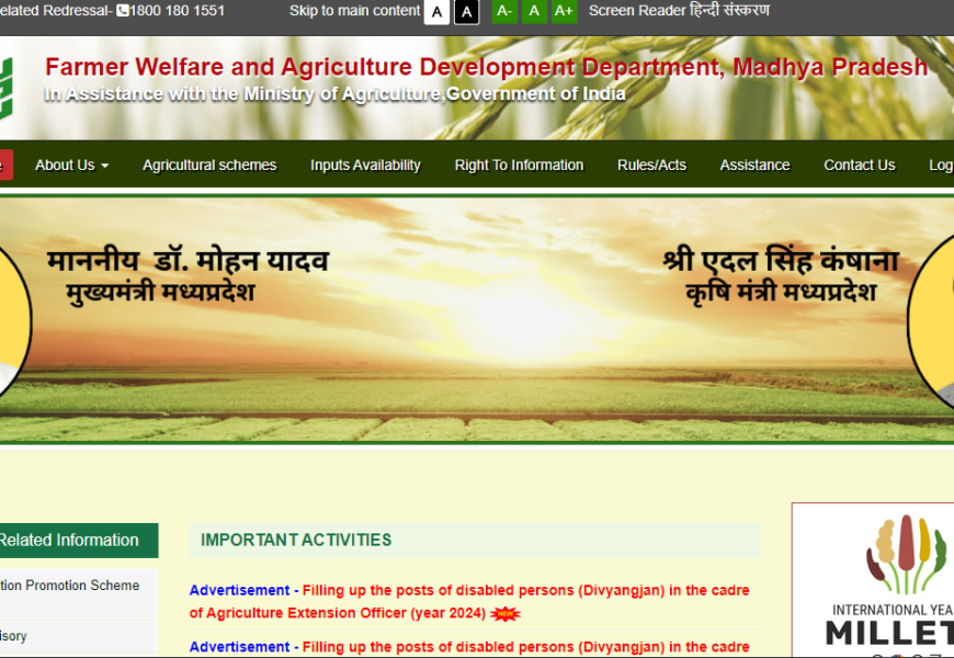 The website you’ve linked is the official portal for the Department of Agriculture in Madhya Pradesh, specifically focused on providing information and services related to agriculture in the state. Key features of the site typically include: