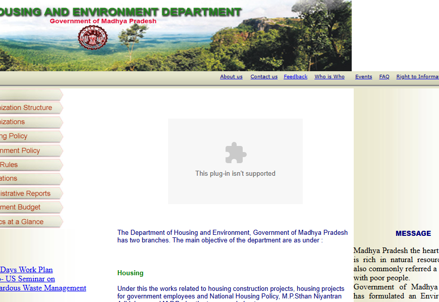 The website you mentioned is the official site for the Department of Housing and Environment of the Government of Madhya Pradesh. Here are some key features: