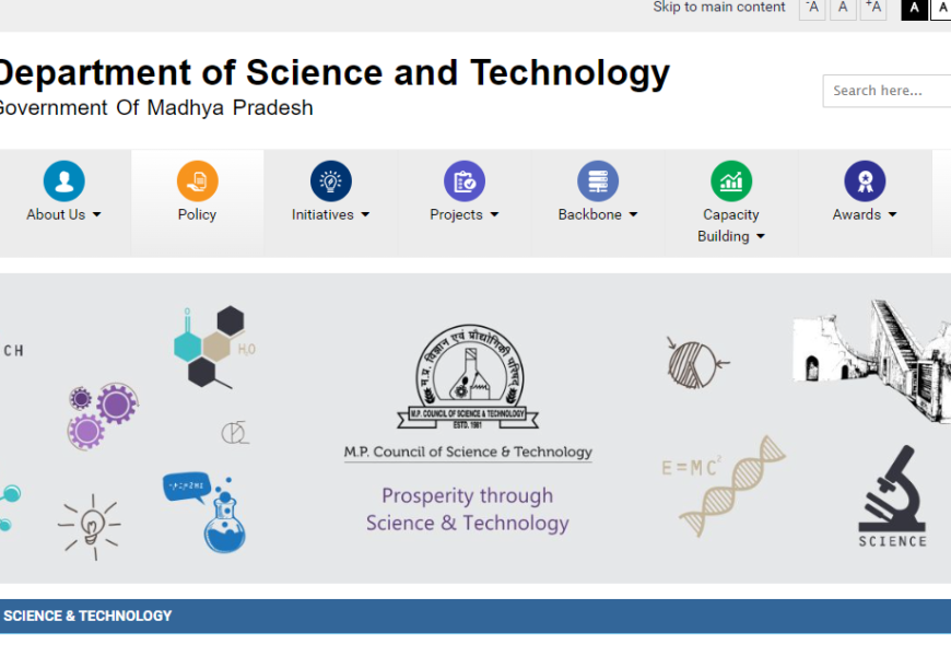 The website you’ve linked is the official portal for the Department of Science and Technology (DST) in Madhya Pradesh. This department focuses on promoting and supporting scientific research, technology development, and innovation within the state. Key features of the site typically include:
