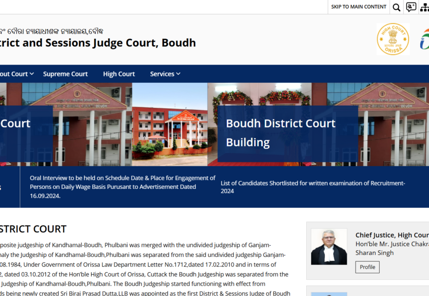 The District and Sessions Judge Court, Boudh website provides information about the judicial services and proceedings in Boudh, Odisha. The platform offers updates on case statuses, court orders, judgments, and important notifications. It also provides online resources for legal professionals and the public, including application forms, court schedules, and guidelines for filing cases. This website aims to enhance accessibility and transparency in the judicial process. Visit the District and Sessions Judge Court, Boudh for more details.