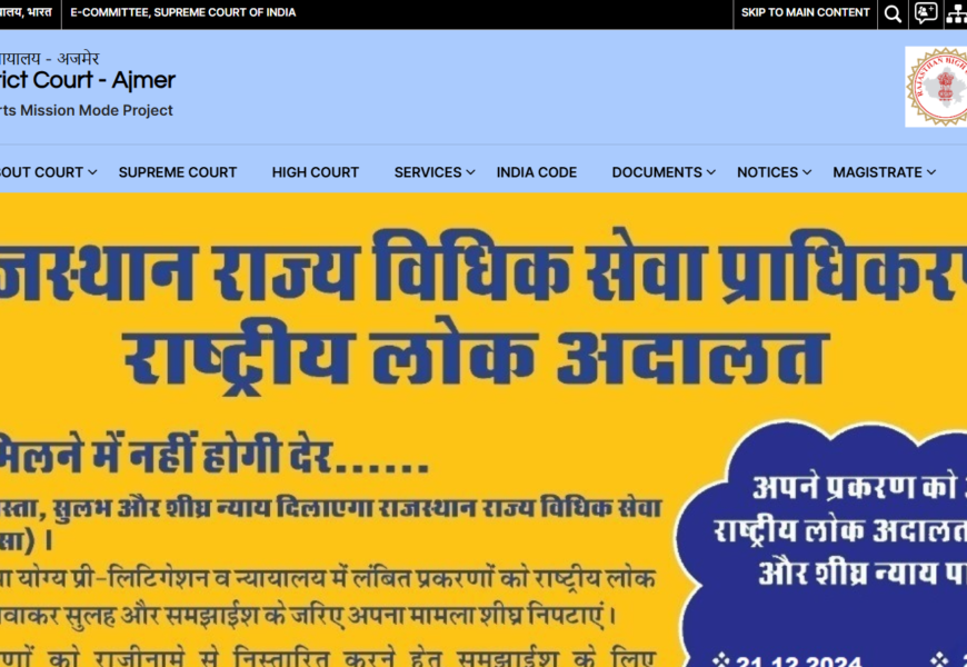 The District Court Ajmer website, part of the e-Courts Mission Mode Project, provides access to various judicial services and resources for citizens and legal professionals. It offers information about case status, cause lists, judgments, and court orders for cases within Ajmer District. The site aims to improve transparency and accessibility by enabling online tracking of cases and providing essential details about the functioning of the district court. It also includes services such as e-filing and other online services related to court proceedings. For more details, visit the District Court Ajmer website.