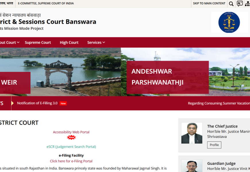 The District & Sessions Court Banswara website, part of the e-Courts Mission Mode Project, provides access to judicial services for citizens and legal professionals. It offers information about case statuses, court orders, judgments, and cause lists for cases in Banswara District. The site aims to improve transparency and accessibility by allowing online tracking of cases and providing essential details about the court’s functioning. It also includes services like e-filing and other online resources for court proceedings. For more details, visit the District & Sessions Court Banswara website.