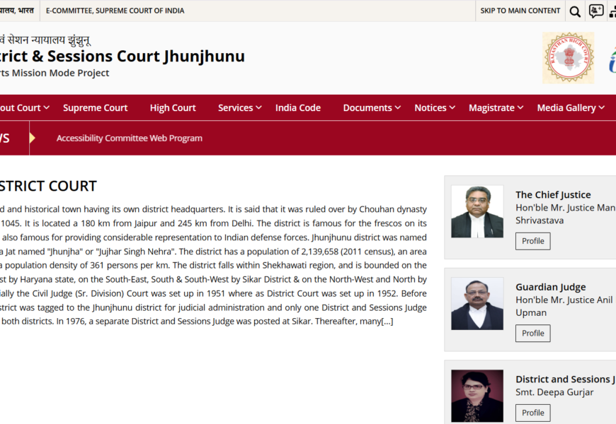 The District & Sessions Court Jhunjhunu website offers digital access to judicial services, including case statuses, judgments, court orders, and cause lists. As part of the e-Courts Mission Mode Project, it aims to enhance the efficiency, transparency, and accessibility of the judicial system. The platform also supports e-filing and provides essential legal resources for the public and litigants. For more details, visit the District & Sessions Court Jhunjhunu website.