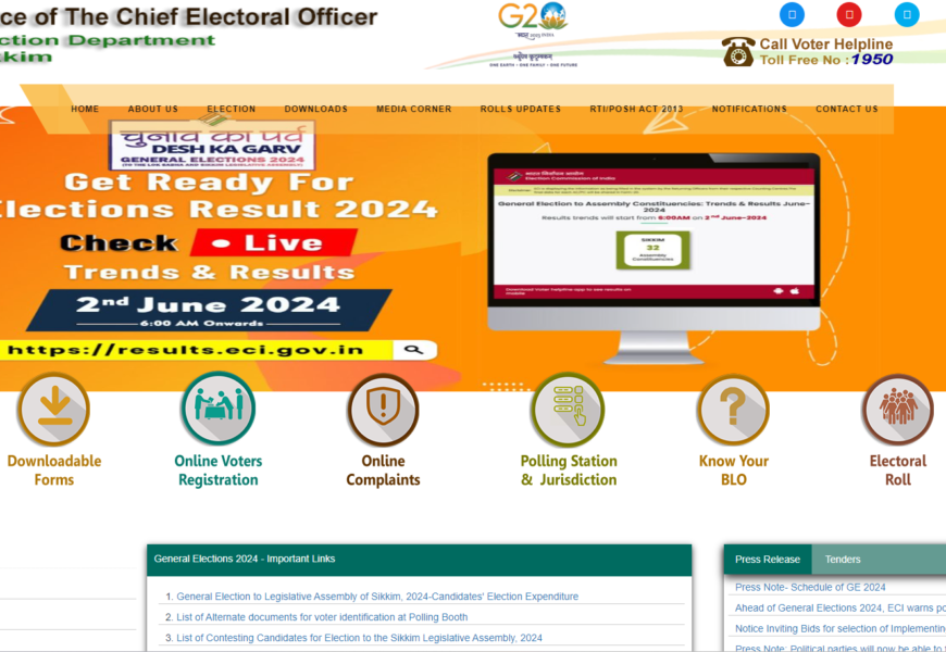 The website “Office of the Chief Electoral Officer, Sikkim” provides information on electoral processes in Sikkim. It features sections on election results, voter turnout, electoral rolls, statistical reports, and downloadable forms and handbooks. It also offers media coverage, press releases, and updates on various election-related activities. The site aims to ensure transparency and accessibility for voters and stakeholders.