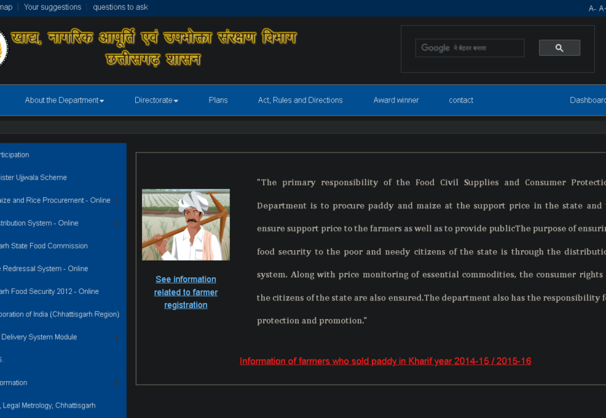 The website https://khadya.cg.nic.in/ is the official portal of the Food, Civil Supplies and Consumer Protection Department of Chhattisgarh, a state in central India. The department is responsible for ensuring the availability of essential commodities, regulating their prices, and protecting the interests of consumers in the state.