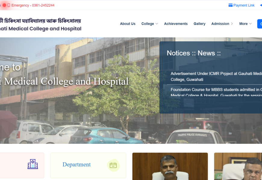 The website of the Gauhati Medical College and Hospital (GMCH) provides information about the institution’s history, academic programs, hospital services, and healthcare initiatives. It covers the courses offered in medical and allied fields, faculty details, and the hospital’s role in providing clinical services. It also includes important announcements, contact information, and updates for students, patients, and staff.