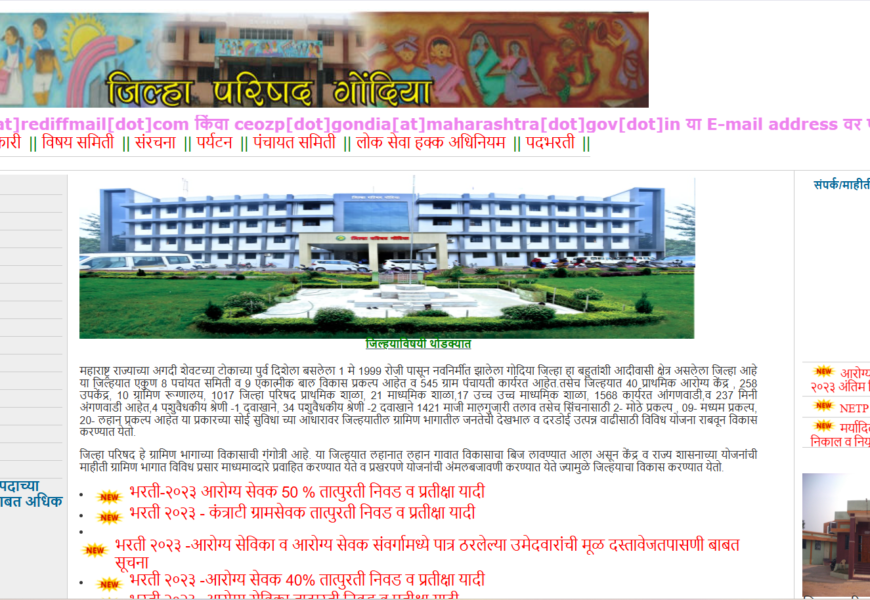 The Gondia Zilla Parishad website offers comprehensive information on local governance, rural development, and public services in the Gondia district of Maharashtra. It highlights various schemes, projects, and initiatives undertaken to improve infrastructure, education, health, and agriculture in the region. Users can access contact details of officials, administrative updates, and resources for citizens. The platform promotes transparency and aims to foster community development through effective governance and citizen engagement.