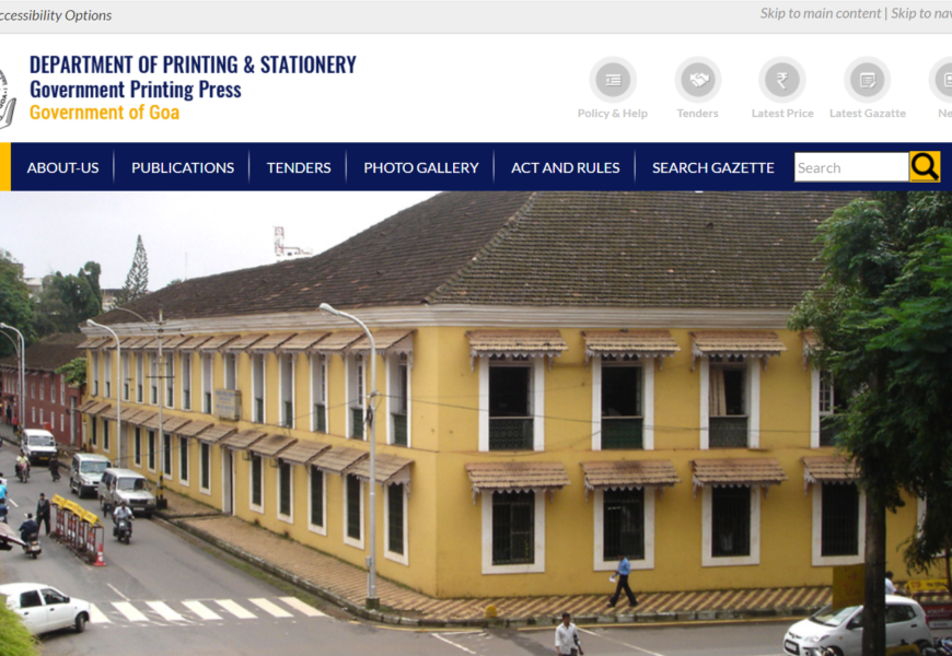 This is the official site of the Goa Government Printing Press, which handles the publication of government notifications, official documents, and gazettes. It also provides access to printed materials such as acts, rules, and other legal documents.(https://goaprintingpress.gov.in/)