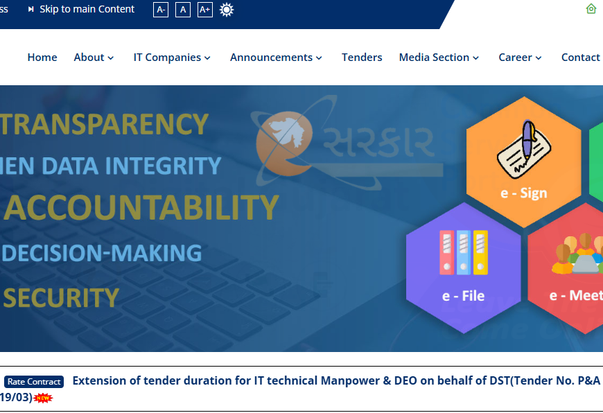 The Gujarat Informatics Limited (GIL) website serves as the central platform for IT development and e-governance initiatives in Gujarat. It provides information on IT policies, projects, and services aimed at promoting the state as an attractive IT/ITES destination. The site includes details about ongoing and past projects, tenders, announcements, and success stories. It also features resources for IT companies and updates on government tenders related to IT infrastructure and services.
