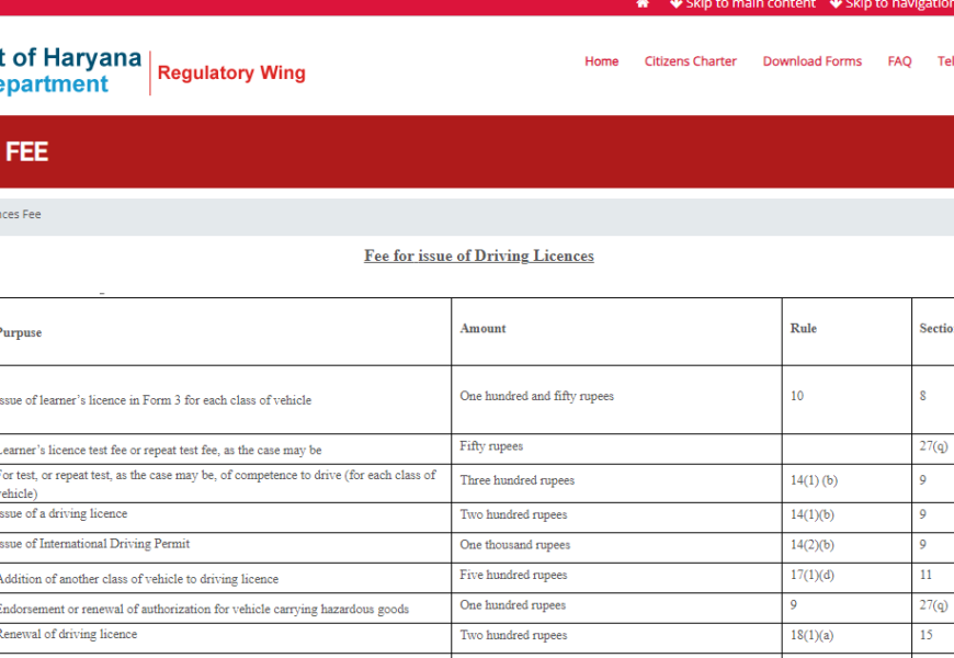 • Fee Structure: Detailed information on the various fees associated with obtaining or renewing driving licenses in Haryana.