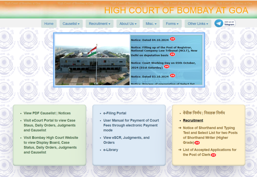 This is the official portal of the High Court of Bombay at Goa. It provides access to case listings, judgments, and updates related to court proceedings in the state of Goa.(https://hcbombayatgoa.nic.in/)