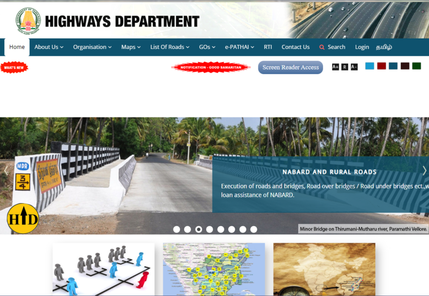 The website tnhighways.tn.gov.in/en/ is the official portal for the Highways and Minor Ports Department of Tamil Nadu. This site provides comprehensive information and resources related to the development, management, and maintenance of highways and minor ports within the state. Here’s an overview of what you can typically find on this website:
