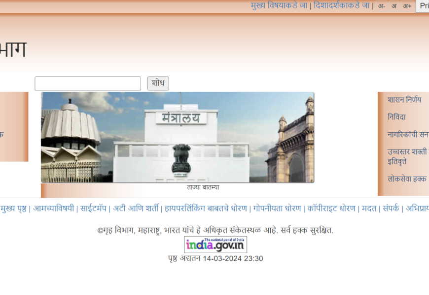 The website https://home.maharashtra.gov.in/ of the Home Department of the Government of Maharashtra provides information on public safety, law and order, disaster management, and internal security. It includes resources such as government orders, policies, circulars, and updates on various initiatives. The site also offers access to services for citizens, details on departmental meetings, and contact information for officials.