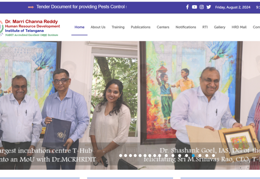 The MCR Human Resource Development Institute (HRDI) of Telangana is an institution focused on the training and development of human resources within the state. The website provides information about various training programs, workshops, and seminars conducted for government officials and employees. It serves as a resource for improving skills and competencies of public servants, thereby contributing to better governance and administration. The site features details on courses, schedules, faculty, and registration processes for interested participants.