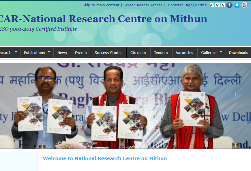 The site likely provides information about the research, conservation efforts, and activities related to Mithun breeding and husbandry practices.