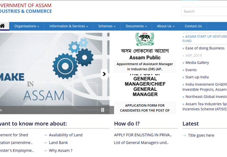 The Assam Industries & Commerce Department’s website provides information and services related to the state’s industrial development. It highlights various schemes for business support, such as SVAYEM, PMEGP, and Mukya Mantri Karmajyoti Achani. It offers details on policies, registration processes, industrial infrastructure, and available grants. The site also hosts resources for entrepreneurs, including documents, reports, and notifications, and emphasizes the state’s commitment to facilitating ease of doing business. It also links to sub-organizations like Assam Gas Company and Assam Industrial Development Corporation. More details are available at Assam Industries & Commerce.