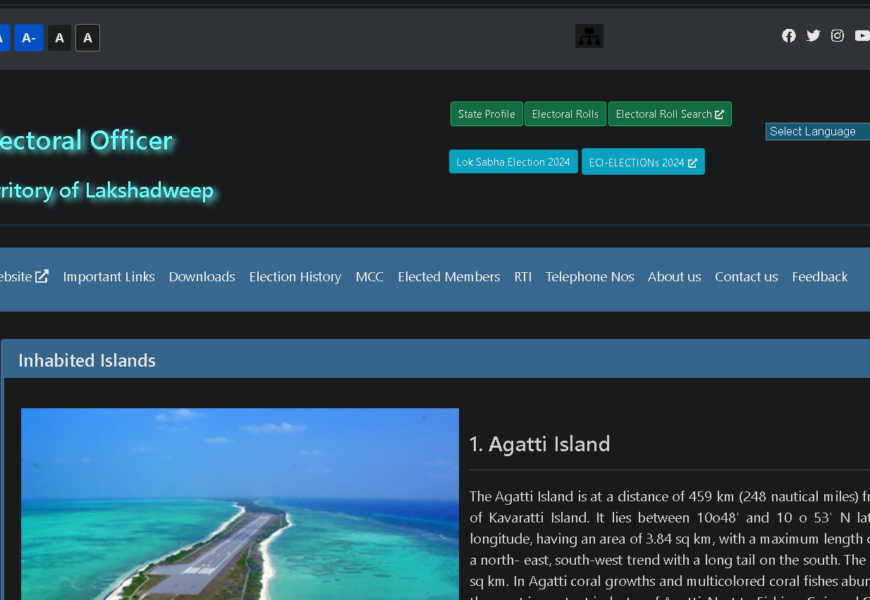The webpage https://ceolakshadweep.gov.in/inhabited-islands provides information about the inhabited islands of Lakshadweep, a Union Territory of India. The website is maintained by the Chief Electoral Officer of Lakshadweep.