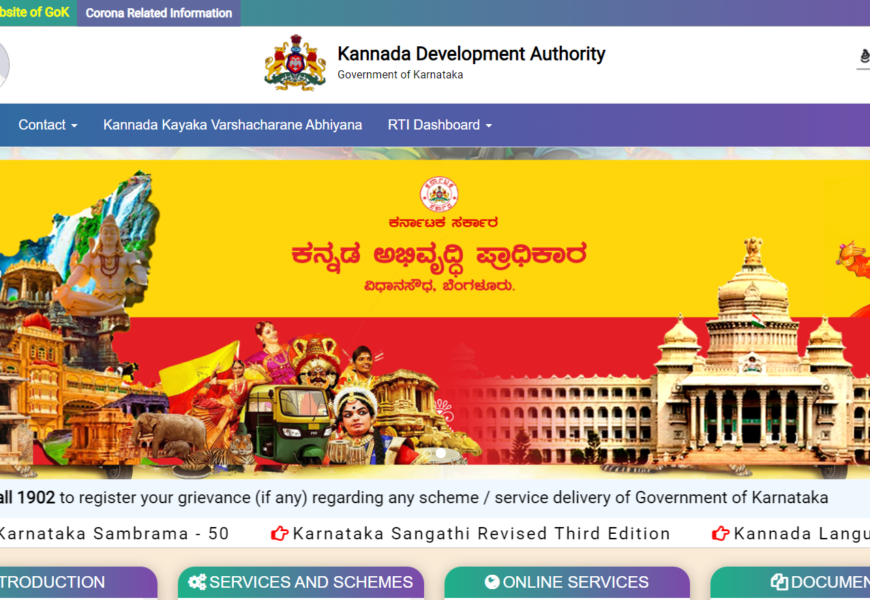 Home Page: The homepage provides an overview of the Kannada Pradhikara’s activities, including recent updates, important announcements, and quick links to various sections of the website. It highlights the authority’s initiatives and key developments related to the Kannada language.