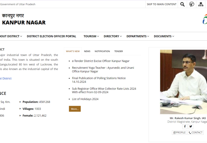 This site provides district-level services, administrative updates, and resources for citizens, including information on government schemes, public utilities, development projects, and tourism in Kanpur.