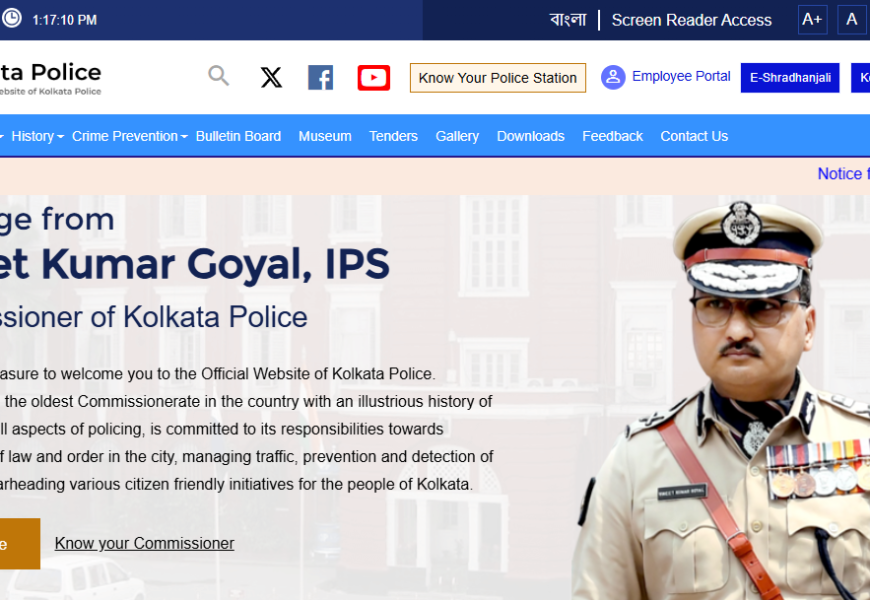 The website “Kolkata Police – Glorious Service Since 1856” is likely the official website of the Kolkata Police, the law enforcement agency responsible for maintaining law and order in Kolkata, West Bengal, India.