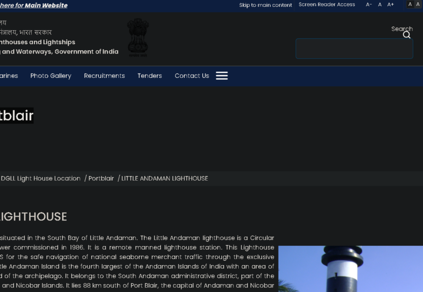 This website leads to a page on the Directorate General of Lighthouses and Lightships (DGLL) website about the Little Andaman Lighthouse, which is located in the Andaman and Nicobar Islands. Here’s an overview of what you can find on this page: