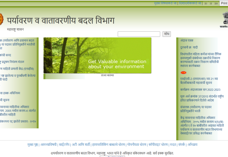 The Maharashtra Environment and Climate Change Department focuses on environmental protection and addressing climate change issues. It oversees policies, regulations, and initiatives to safeguard Maharashtra’s environment. The site provides information on recent updates, environmental policies, and guidelines for addressing climate-related challenges. It also offers access to reports and important notifications, such as appointments, environmental assessments, and more. For detailed information, visit their official website.