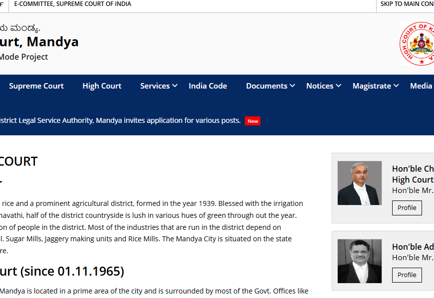 The Mandya District Court website provides information on the court’s services, case statuses, court orders, and a cause list. It includes sections about the court’s history, infrastructure, and lists of current and former judges. Users can access forms, circular notices, tenders, and recruitment opportunities. The site is part of India’s e-Courts initiative, promoting digital case management and public access to legal information. There are tools for searching case details, and it offers resources like the eCourts app for easy access.