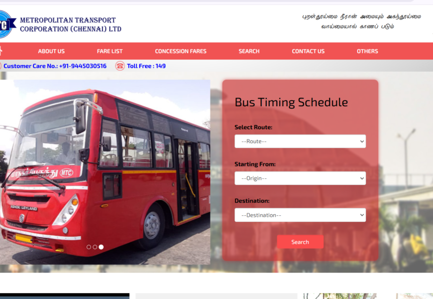 This site provides information on bus routes, schedules, and fares for Chennai’s public transport system. It features updates on new routes, real-time tracking, and initiatives to enhance commuter convenience, including smart card services and mobile app integration.
