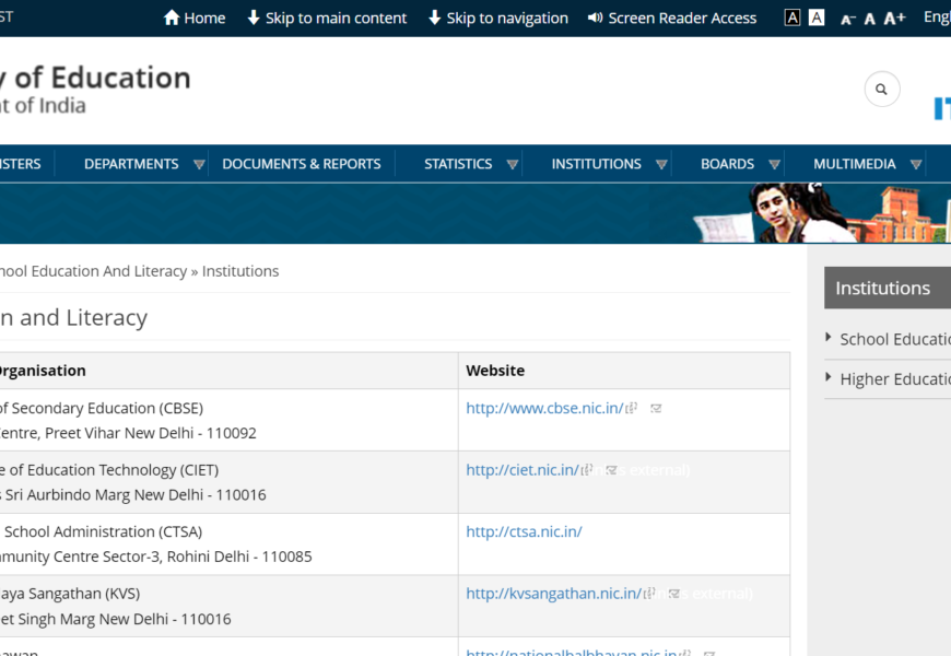 The website you provided, https://www.education.gov.in/institutions, is a section on the official website of the Ministry of Education, Government of India. This section provides information on various educational institutions in India, including universities, colleges, and schools.