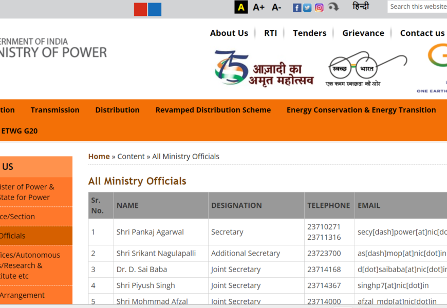 The purpose of this webpage is to provide transparency and accountability in the functioning of the Ministry of Power. By making the contact information of officials publicly available, the ministry aims to: