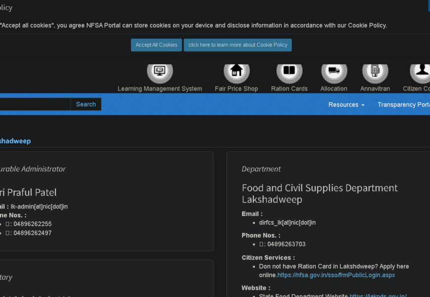 In Lakshadweep, the NFSA is implemented by the Department of Food and Civil Supplies, Government of Lakshadweep. The department is responsible for identifying eligible beneficiaries, distributing food grains, and monitoring the implementation of the Act.
