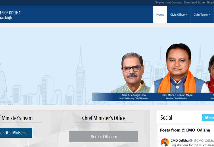 The Odisha Chief Minister’s Office (CMO) website provides updates on government initiatives, schemes, and policies led by the Chief Minister of Odisha. It features news, press releases, speeches, and key announcements. The site also includes links to citizen services, grievance redressal mechanisms, and ongoing developmental projects in the state. For detailed information, visit CM Odisha.