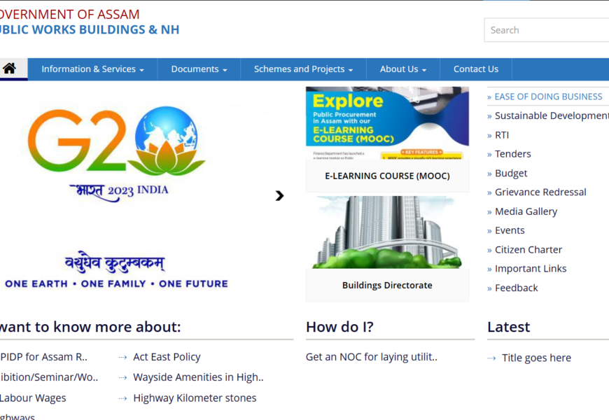 The Assam Public Works Department (PWD) for Buildings and National Highways focuses on developing infrastructure, including roads and buildings, that are vital for the state’s development. The website offers access to information about the department’s vision, mission, projects, schemes, and policies, such as NOC applications for utility services. It also provides resources like documents, updates on road safety, and best practices for national highways. For further details, visit PWD Assam.