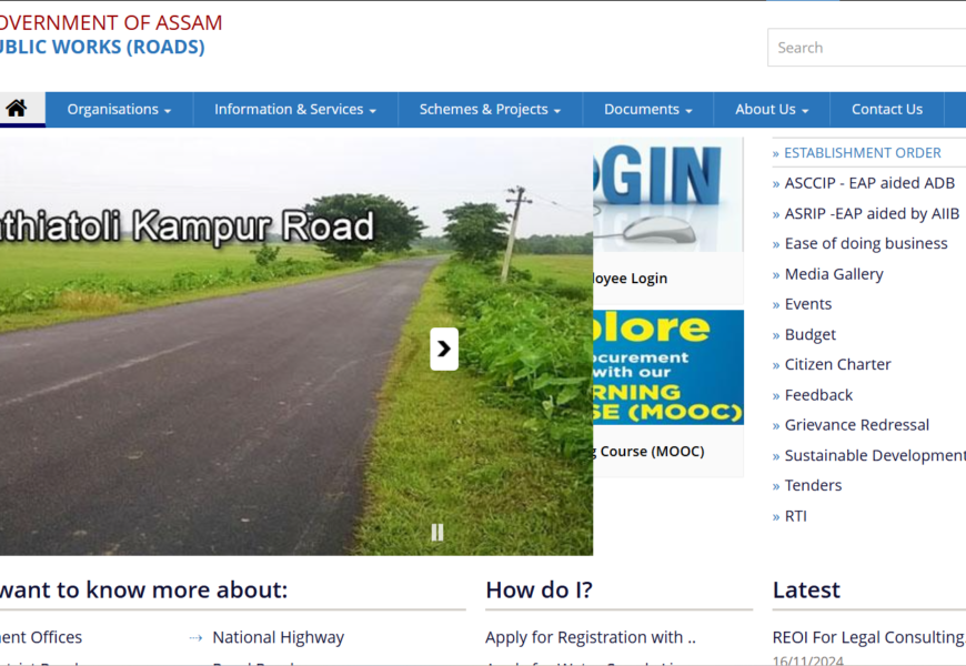 The website of the Public Works (Roads) Department of Assam provides comprehensive information about the state’s road infrastructure. It includes details on road projects, schemes like the Assam State Roads Project and CM’s Special Package, and services such as contractor registration and permissions for water supply line laying. Additionally, it offers access to important documents, reports, and guidelines. The portal is aimed at facilitating public engagement with road-related projects and services in Assam.