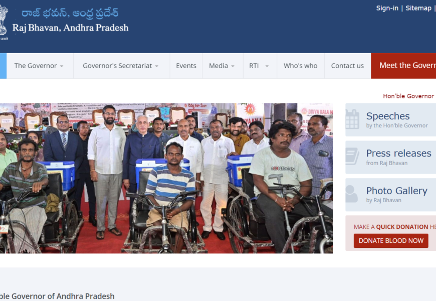The official website (ajbhavan.ap.gov.in) of the Governor’s office of Andhra Pradesh. It provides information about the Governor’s roles, events, press releases, and updates on governmental functions held at Raj Bhavan.