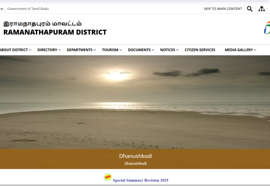 This website represents the administrative setup of the Ramanathapuram district. It provides insights into government initiatives, citizen services, and tourism. Special focus is placed on the region’s historical significance, including the famous temples and beaches, as well as disaster preparedness and local development projects.