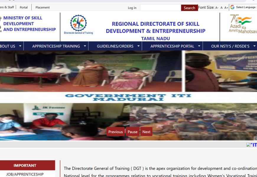 This portal focuses on skill development initiatives under the Directorate General of Training (DGT). It provides information about Industrial Training Institutes (ITIs), apprenticeship programs, and vocational training schemes. Users can explore training schedules, courses, and certifications aimed at improving employability among the youth in Tamil Nadu.