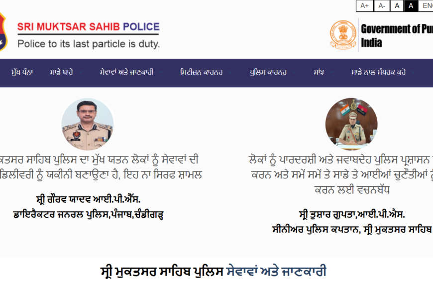 The website of Srimuktsar Sahib Police provides information about the district police department, including updates on law enforcement initiatives, public safety measures, crime prevention tips, and contact details for various police stations. It also offers resources for filing complaints, checking case status, and accessing e-services to ensure transparency and better public interaction.